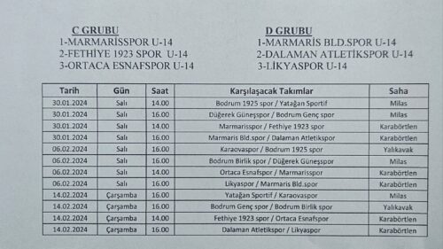 U14 Ligi C Grubu’nu şampiyon bitiren Yatağan Sportif U14 futbol takımımızın 2.etaptaki rakipleri belli oldu.